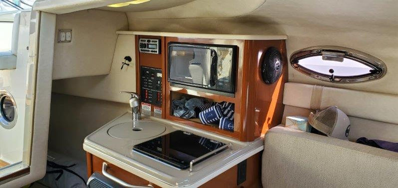 Extremely clean well maintained 2008 240 Sea Ray Mid-Cabin Sundancer. Blue Hull, powered by a brand new (2023) 350 MPI MerCruiser I/O engine with 32 hours since new, with Bravo Three D/P. Options include new Raymarine Touch Screen GPS, and a North Star, Explorer 530 GPS, Digital Multi Function Depth Sounder, Clarion AM/F/M, MP3, DVD w/remote, Ritchie Compass, extended swim platform, remote spotlight, automatic trim tabs, six gallon water heater, Sylvania microwave oven, dual voltage refrigerator/freezer, vanity sink single burner Alcohol/Electric stove top, vacu flush, head with holding tank and pump out, vhf radio, full enclosure, mooring cover and a 2024 Tandem Axle Tidewater Galvanized trailer and more. Remainder of two years on engine warranty. New to market offers encouraged.